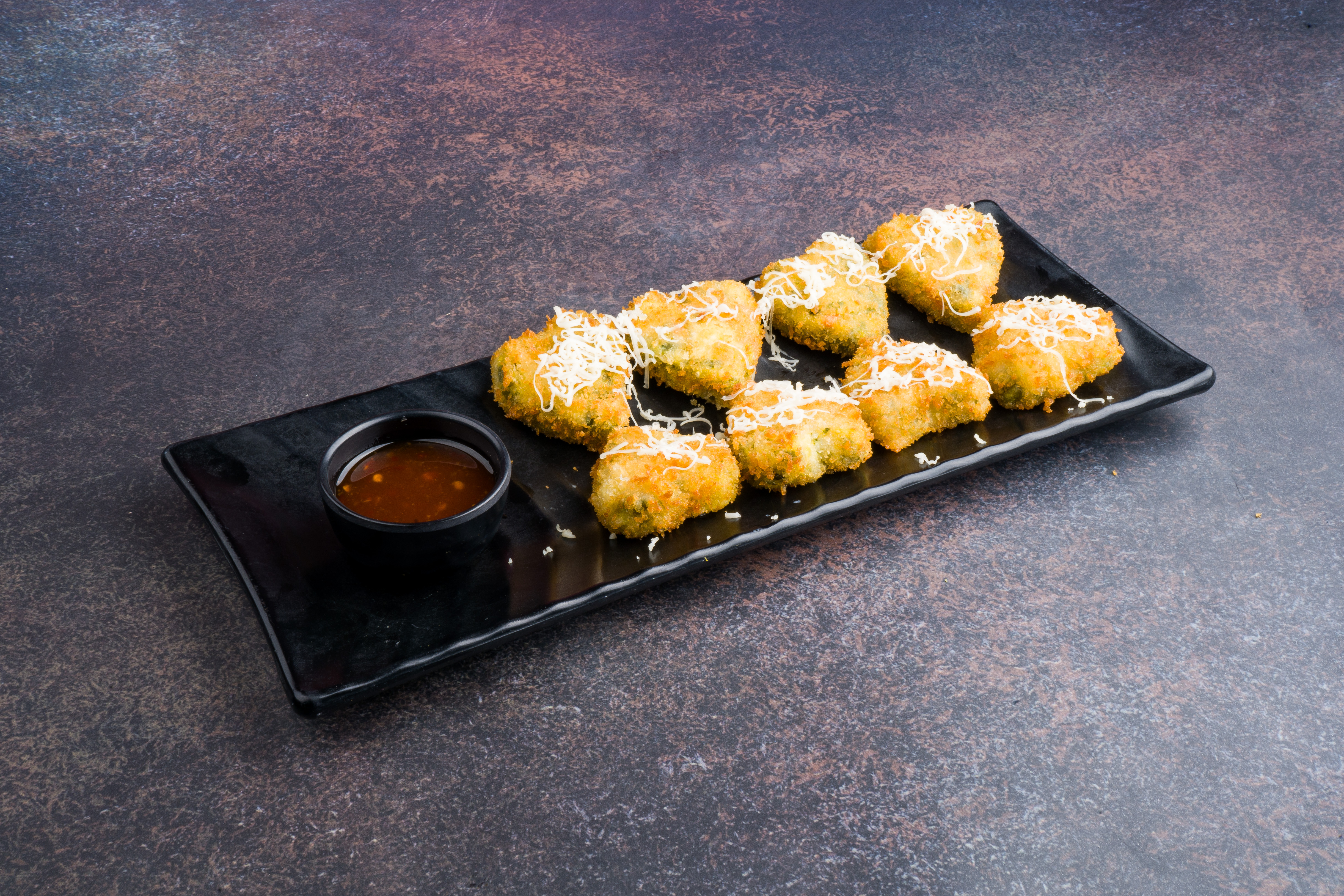 [8 pcs,1-2 Serves] Crunchy, savory bites with melted cheese and tangy onions.