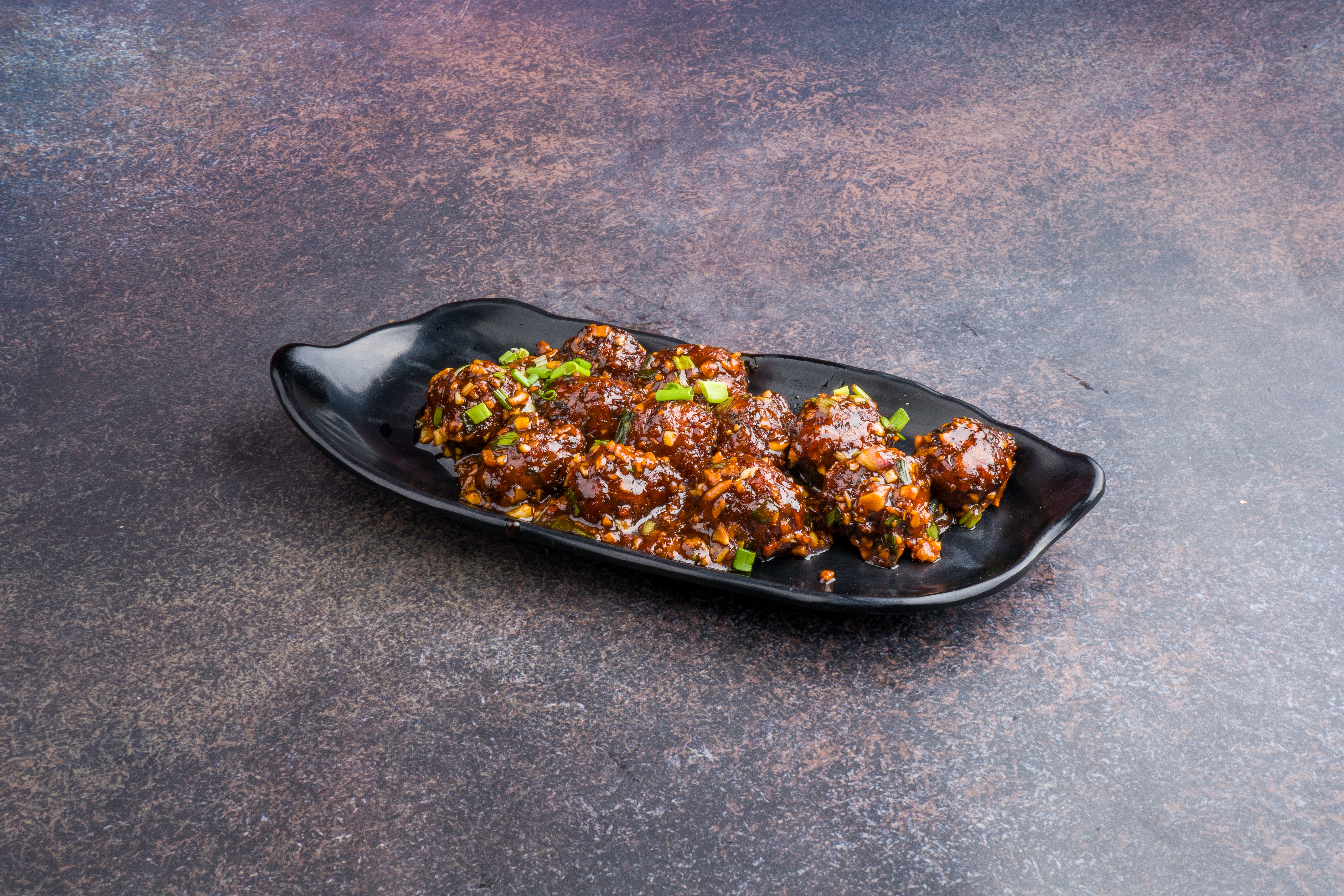 [12 pcs,1-2 Serves] Tasty Manchurian balls, fried and tossed in savory sauce,